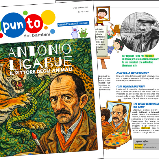 4 pagine in formato pdf da stampare o da leggere online. Antonio Ligabue, la sua arte e le sue opere maggiori raccontate ai bambini con un linguaggio adatto alla scuola primaria. La quarta pagina è dedicata ad un’attività interattiva. Dal giornale Il Punto dei bambini, l’attualità a misura di bambino.